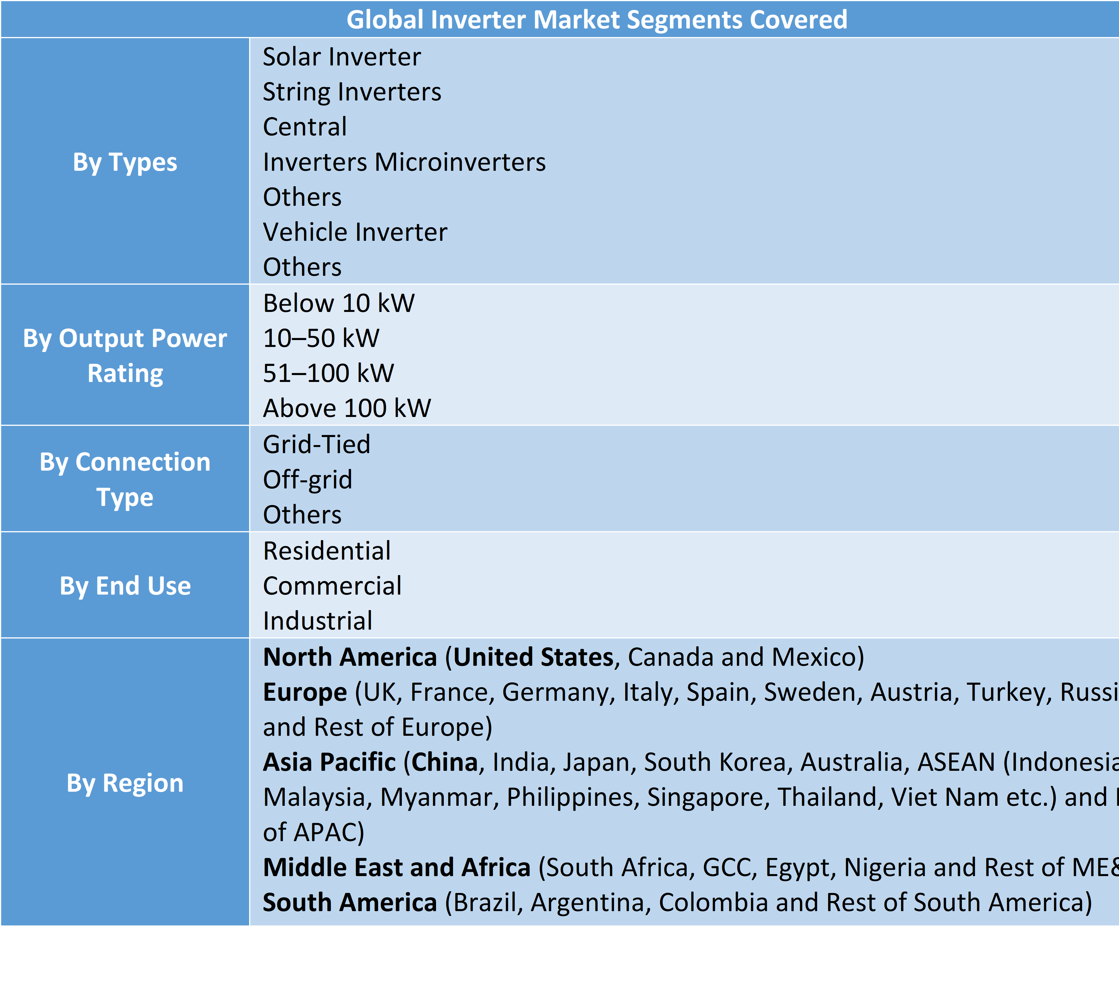 Global Inverter Market Segmentation: Solar Inverters, Hybrid Inverters, Smart Inverters, EV Inverters, and Grid-Tied Solutions Driving Global Renewable Energy Growth
